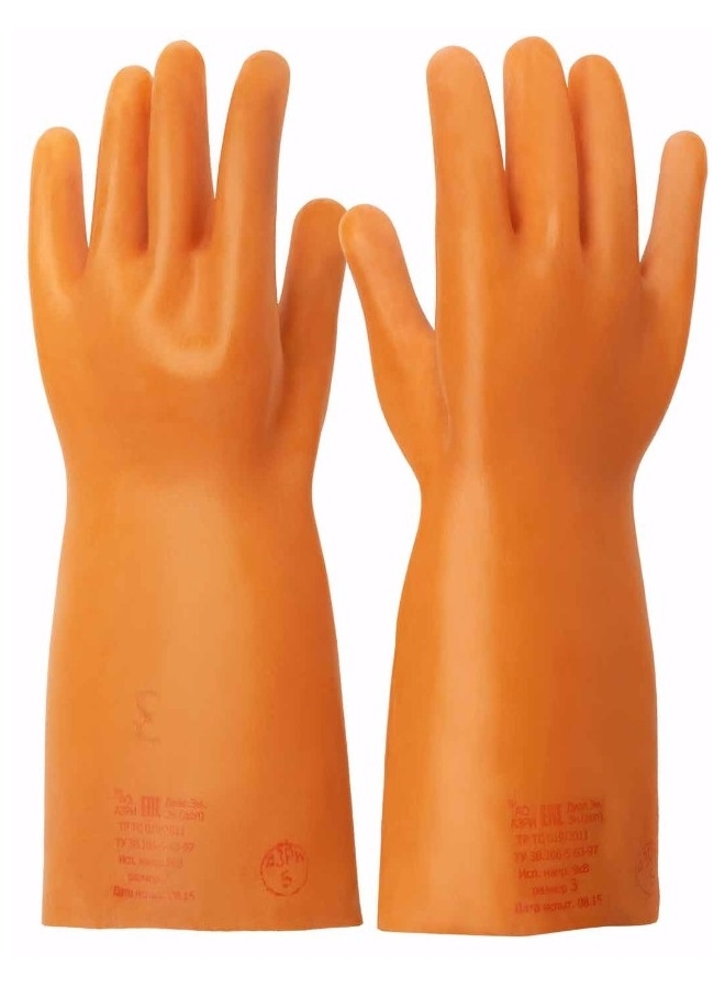 Диэлектрические перчатки бесшовные защитные от поражения постоянным и переменным электрическим током. Основная защита рук при работе с электроустановками напряжением до 1000 в и как дополнительное электрозащитное средство до 7500 V.